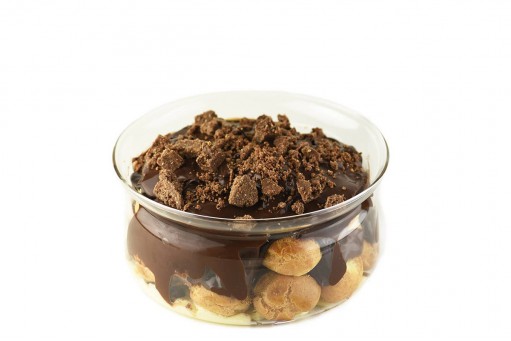 Κρέμα βανίλιας, σπιτικά choux, crumble σοκολάτας και κρέμα σοκολάτα γάλακτος και υγείας.